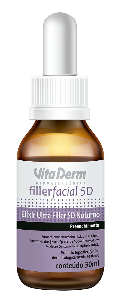 Elixir Ultra Filler 5D Noturno, possui fórmula avançada, com base inteligente, que auxilia na melhor absorção ao aplicar na pele, e princípios ativos que agem na redução do afrouxamento tecidual, auxiliando a redefinir o contorno facial. Enriquecido com uma combinação de ácido hialurônico de baixíssimo peso molecular e ácido hialurônico de alto peso molecular, que juntos, agem de dentro para fora, permeando diferentes níveis da pele, responsáveis pelo preenchimento.