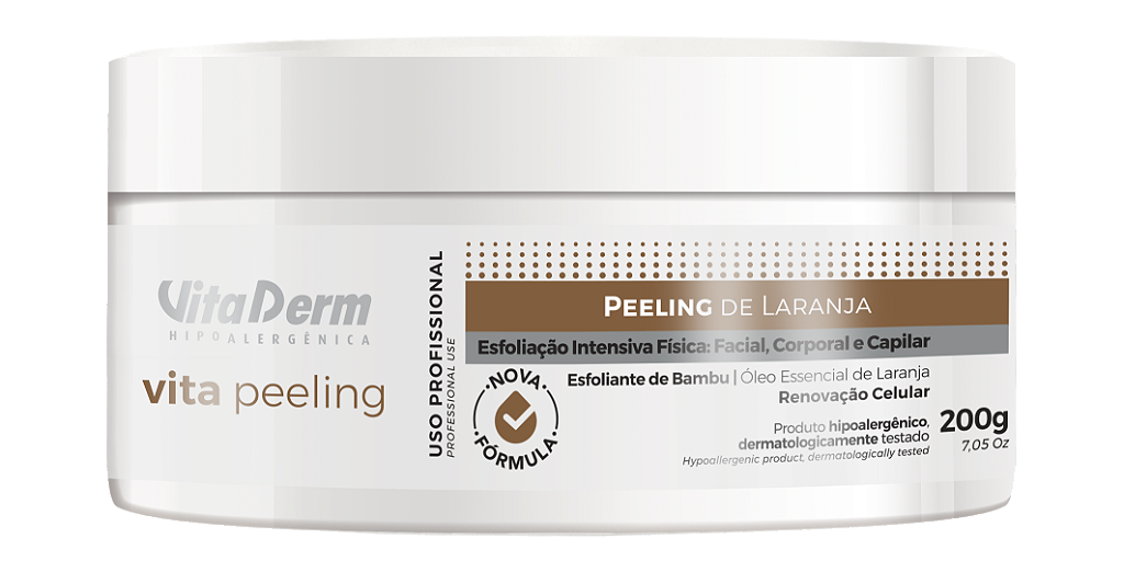 O Peeling de Laranja limpa profundamente os excessos sebáceos e as células mortas devido a propriedade adstringente da laranja. favorecendo a penetração dos ativos específicos para ser utilizada nos tratamentos estéticos, de spa para mãos e pés.