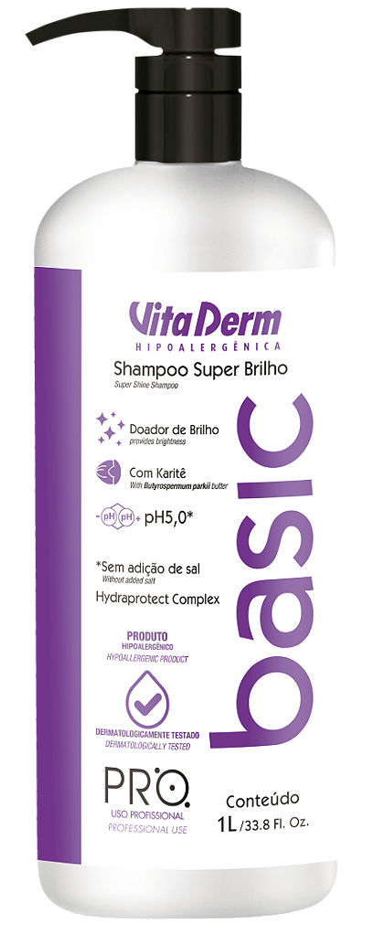 O Shampoo da Linha Pro Basic doador de brilho, higieniza suavemente os fios. Possui em sua formulação a manteiga de karité. Que confere brilho e maciez aos cabelos. Shampoo sem adição de sal. Indicação: Indicado para todos os tipos de cabelo, especialmente os sem brilho. produto hipoalergênico.