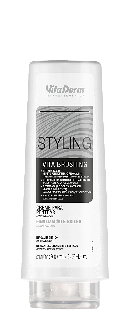 O creme para pentear Vita Brushing foi elaborado com proteína termo ativada, uma inovação da indústria cosmética, o Vita Brushing tem seu efeito potencializado pelo calor do secador, atuando na recuperação e na unificação das escamas dos fios. Com ação desembaraçante, proporciona maior resistência e brilho. Formulado especificamente para permanecer nos fios após a lavagem, o produto também pode ser usado nos penteados sem secador, protegendo e restaurando os cabelos.